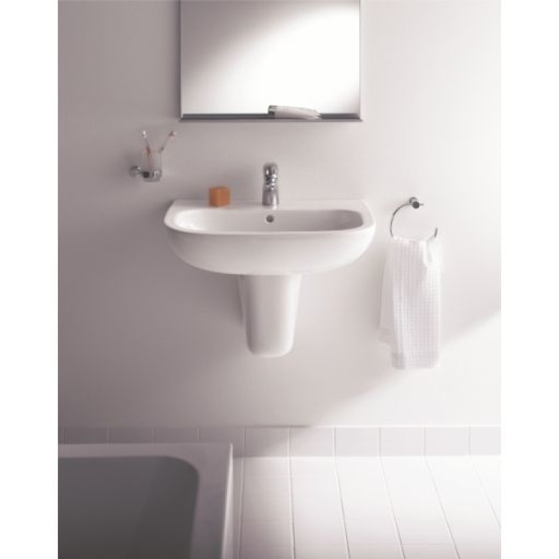 Praustuvą galima montuoti su sifono gaubtu (puskoje) Duravit D-Code 08571800002 arba su pjedestalu Duravit D-Code 08632700002.