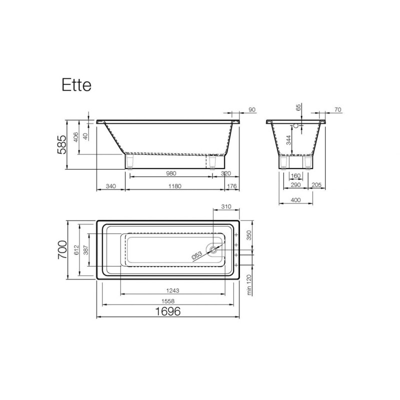 Vispool akmens masės vonia ETTE 170x70cm