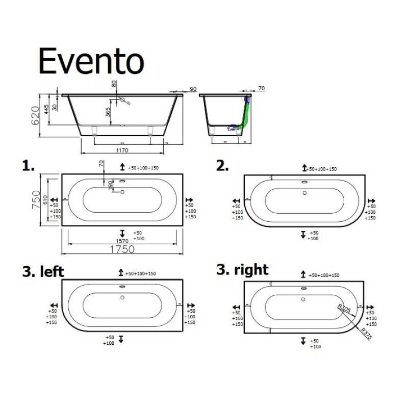 Vispool akmens masės vonia EVENTO 1750x750 mm