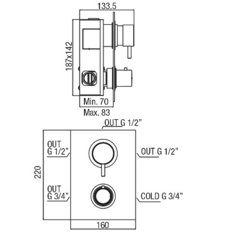 Potinkinis Termostatinis maišytuvas dušui NU 55169. Su trim išėjimais.