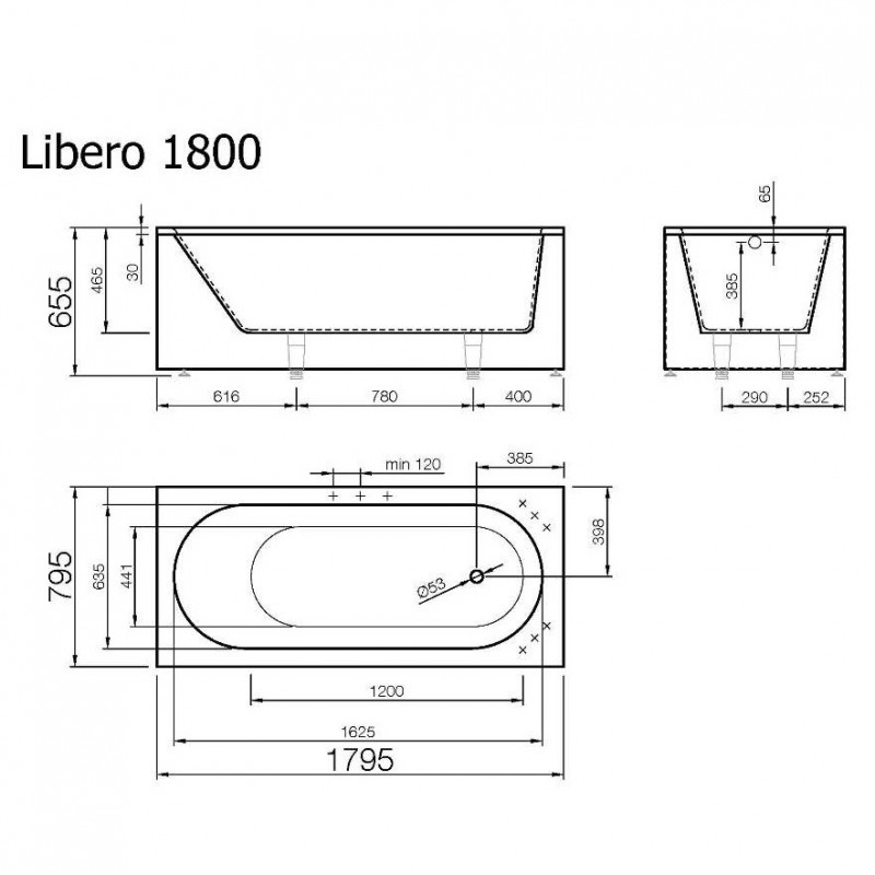 Vispool akmens masės vonia Libero 1700x800mm ir 1800x800mm