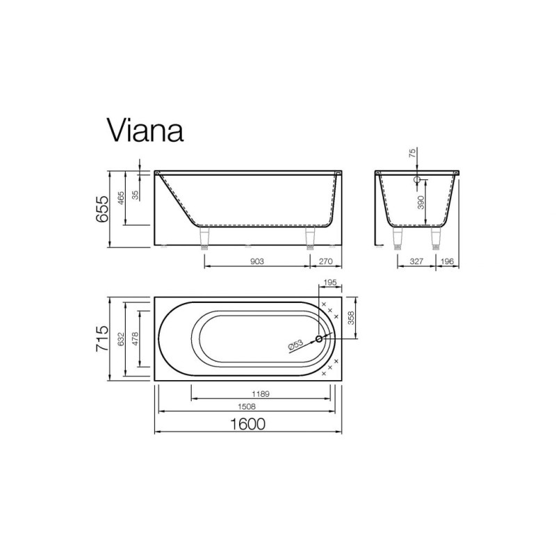 Vispool akmens masės vonia Viana 1600x715 mm