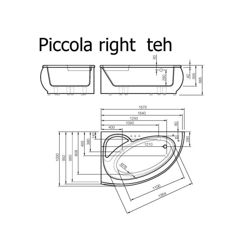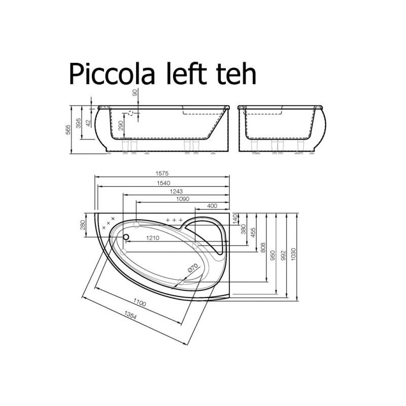 Vispool akmens masės vonia Piccola 1575x950 mm
