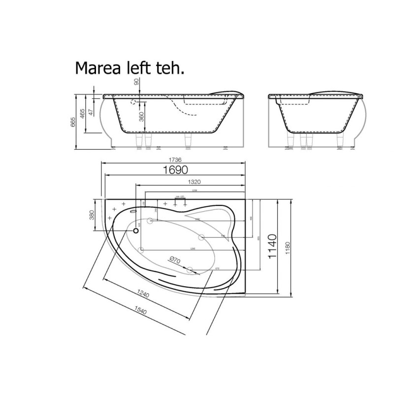 Vispool akmens masės vonia Marea 1736x1180 mm