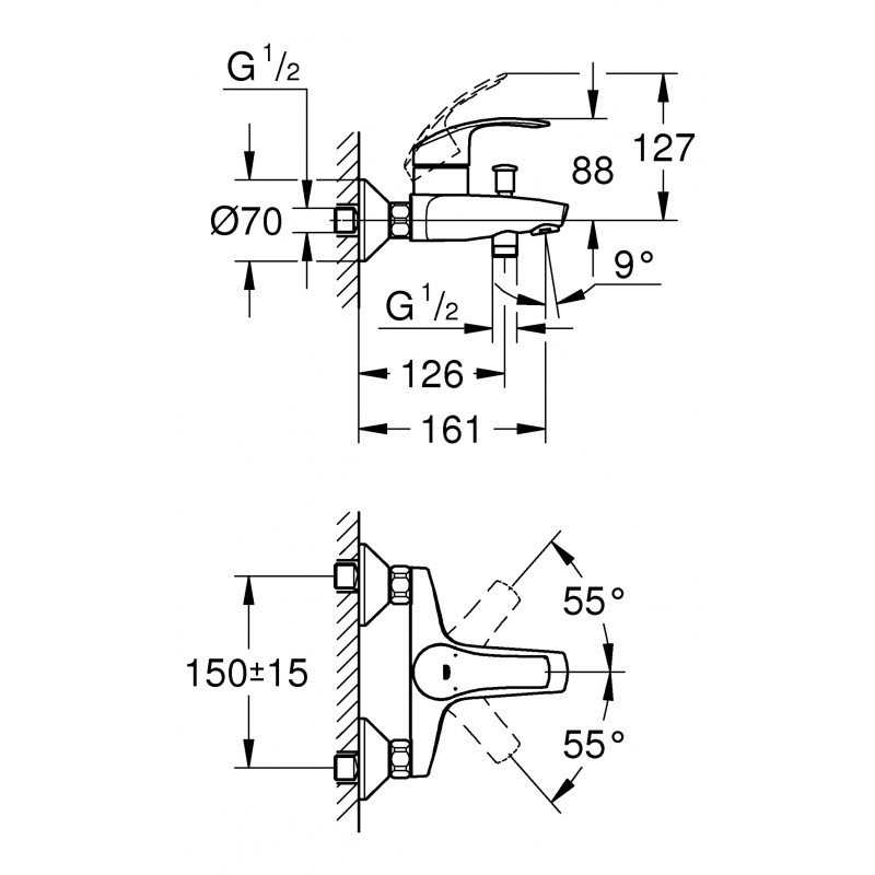 GROHE Eurosmart tai vieno sverto sieninis maišytuvas su vandens taupymo funkcija. Tinka ir voniai, ir dušui. Tai išskirtinis dizainas ir vokiška kokybė už puikią kainą!