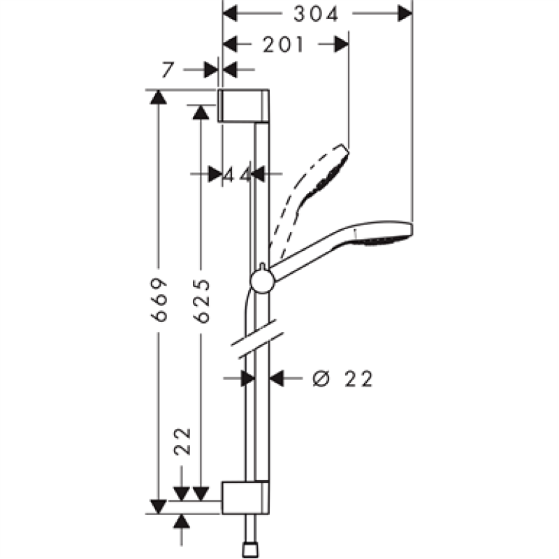 Hansgrohe dušo komplektas Croma Select S Vario, 650 mm, 15l/min, baltas/chromas