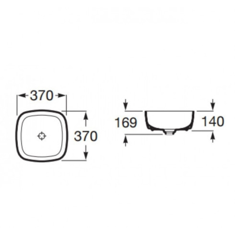 Roca Inspira Soft pastatomas praustuvas, 370x370 mm, baltas Fineceramic®