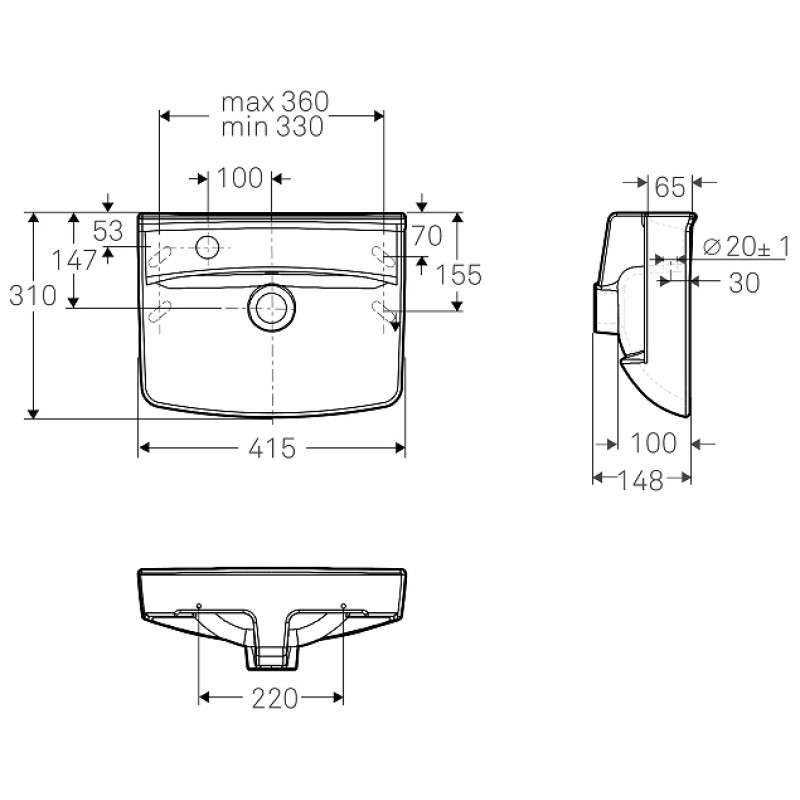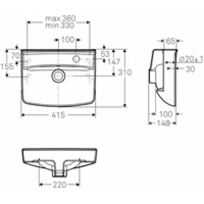 Praustuvas-stalviršis su aukštesniu galiniu kraštu. 41,5 cm. Maišytuvo skylė dešinėje arba kairėje. Tvirtinamas sieniniais kabliais ar laikikliais. Pateikiamas baldų komplekte Ifö Inspira 400
