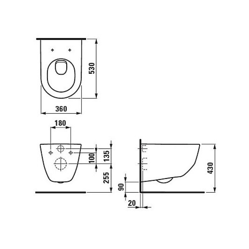 Laufen Pro Rimless pakabinamas WC su Slim lėtai nusileidžiančiu dangčiu, baltas.