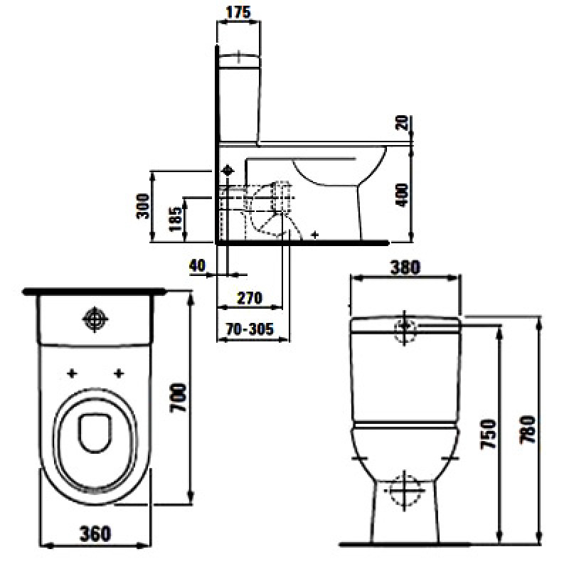 26952-000288 Bakelis Laufen pro su šoniniu pajungimu, 3/6L vandens nuleidimo mechanizmas