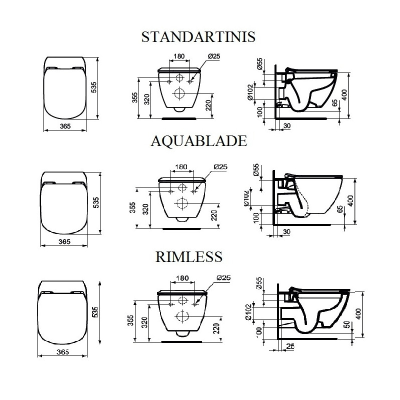 Žymos: Ideal Standard Tesi pakabinamas klozetas su plonu dangčiu T007801 T352801