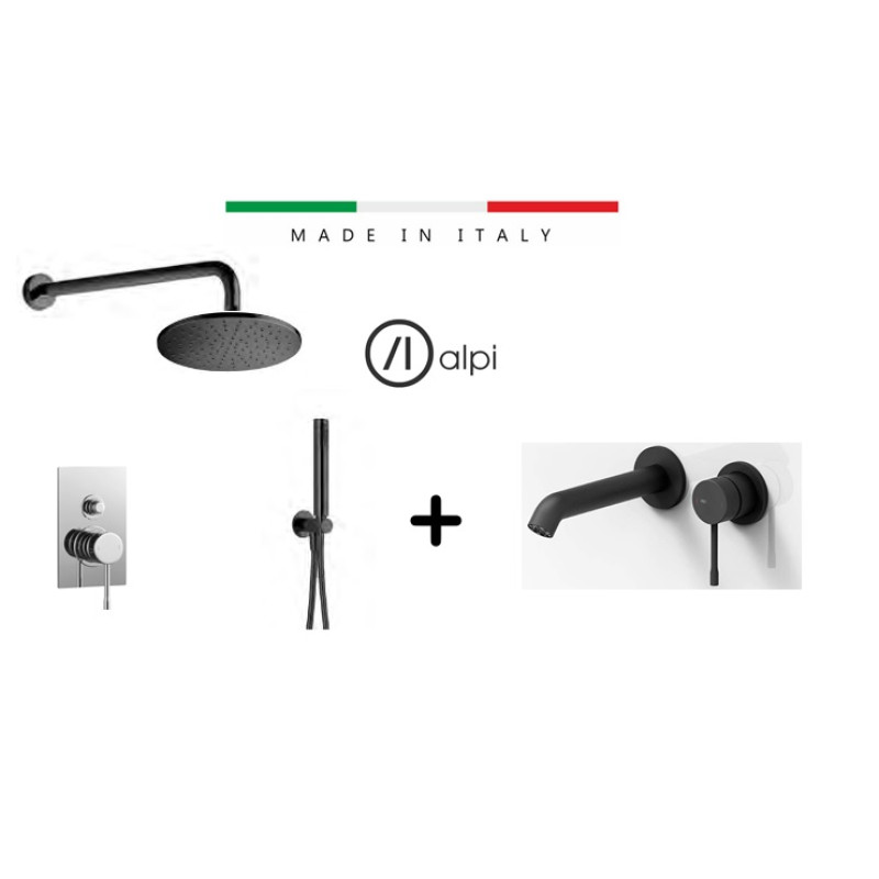 - Potinkinė Alpi Blue juoda dušo sistema su potinkine dalimi