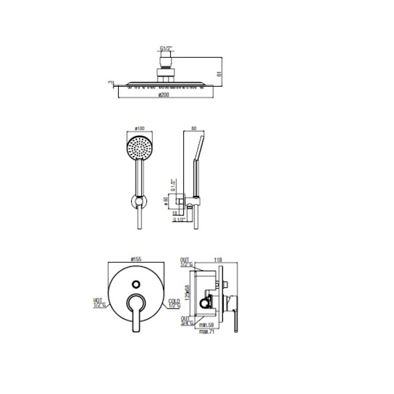 Potinkinė Alpi SWK 741863 dušo sistema su potinkine dalimi