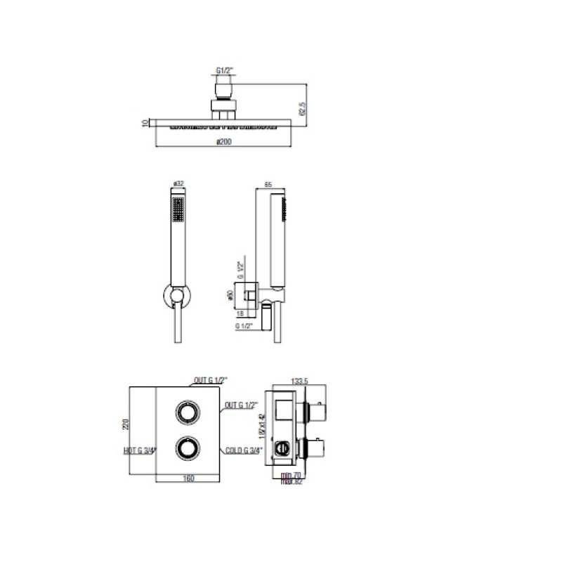 Dušo galvos laikiklio ilgis – 35 cm.