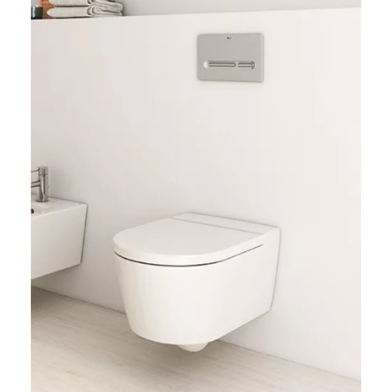 Pakabinamas klozetas Roca Inspira round su Rimless (berėme technologija) ir lėtaeigiu dangčiu.