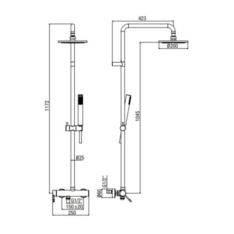 Dušo galvos atstumas nuo sienos (centras): 42,3 cm