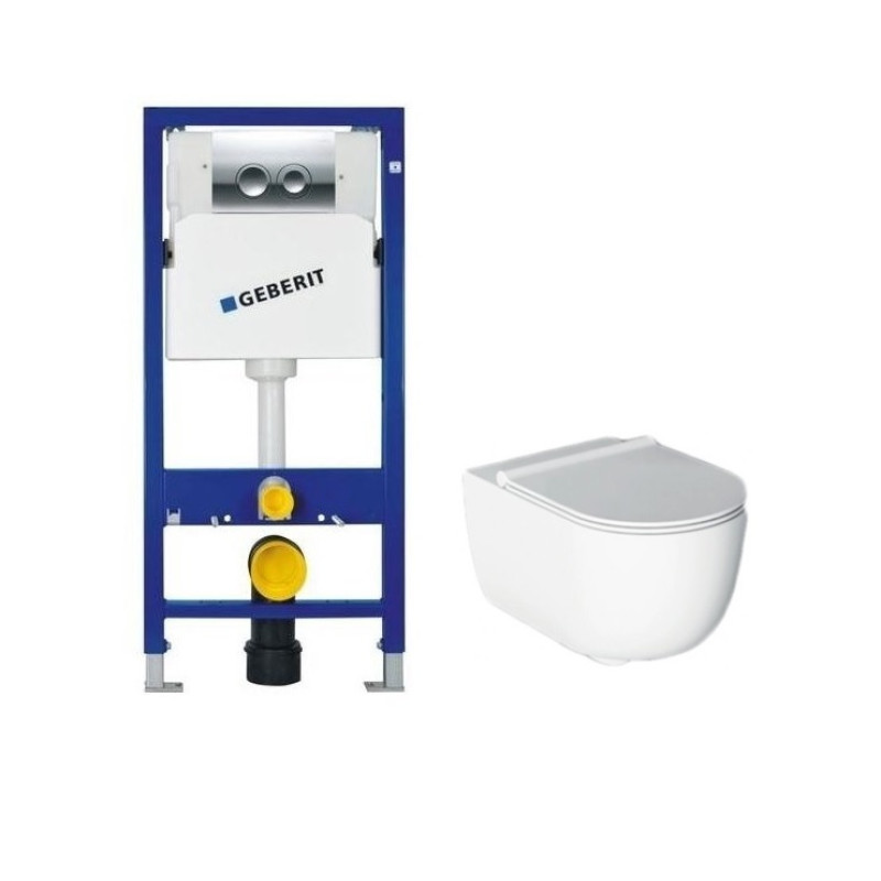 Potinkinio WC rėmo Geberit 4in1 ir pakabinamo klozeto Alice Ceramica Unica Rimless su plonu lėtaeigiu dangčiu komplektas