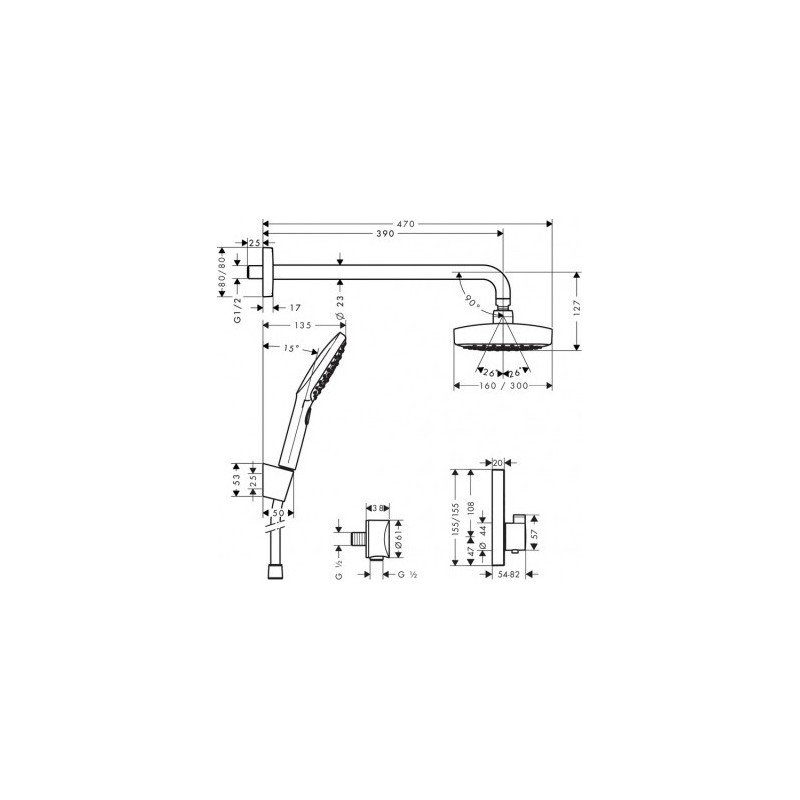 Potinkinis termostatinis dušo komplektas Hansgrohe Raindance Select E. Visos dalys naudojamos tik Hansgrohe gamintojo, kad puikiai funkcionuotų ir tarnautų Jums.