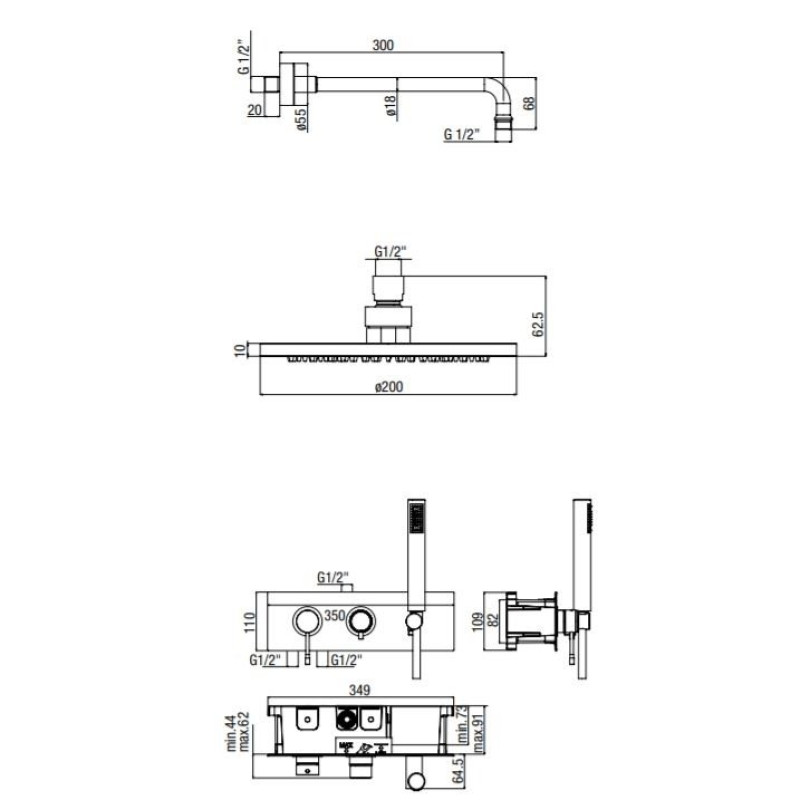 Žymos: Potinkinė dušo sistema su apvalia dušo galva Alpi SWK85L1863CR