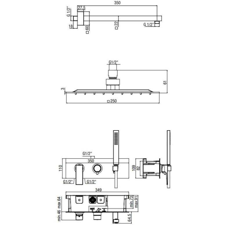 Žymos: Potinkinė dušo sistema su kvadratine dušo galva Alpi SWK18L1863CR