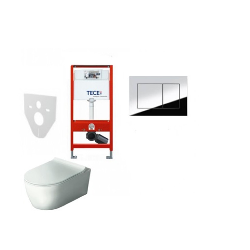 - Rėmas Tece, tvirtinimai rėmui, garso izoliacinė tarpinė, chromuotas nuleidimo mygtukas.