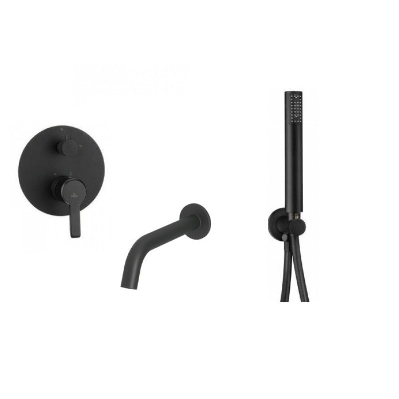 Potinkinė juoda matinė vonios sistema Deante Arnika