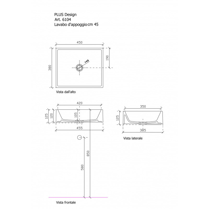 Pastatomas ant stalviršio Galassia Plus Design 550x380 mm