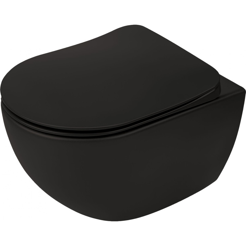 Juodas matinis pakabinamas klozetas Deante Peonia Rimless