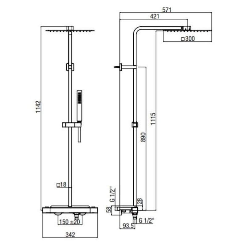 Metalinė dušo galva: 300x300 mm.