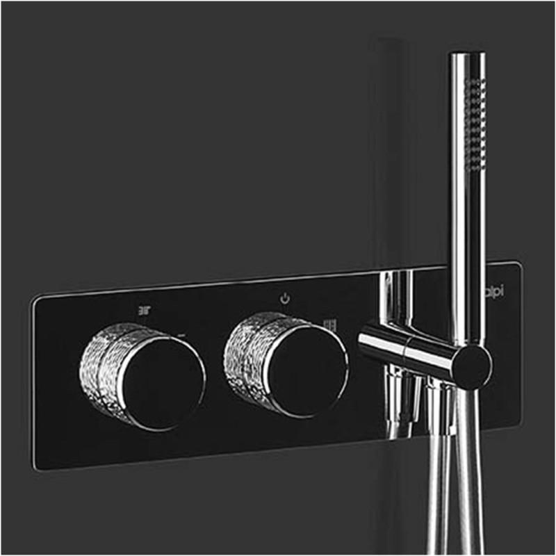 Italų gamintojo ALPI termostatinis potinkinis vonios maišytuvas. Šie maišytuvai pasižymi išskirtiniu dizainu, aptokiomis formomis bei vientisumu. Tai puikus pasirinkimas, mėgstantiems šiuolaikišką dizainą, modernius vonios kambarius.