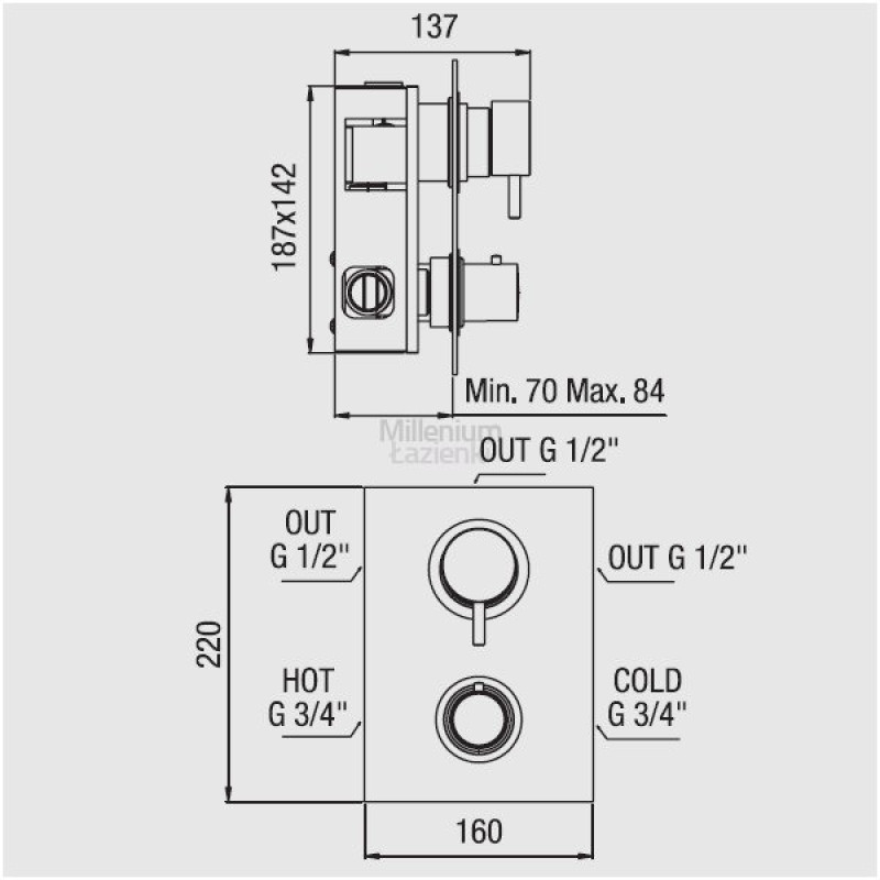 Alpi Solo termostatinis potinkinis dušo maišytuvas 3 padėčių NU55169