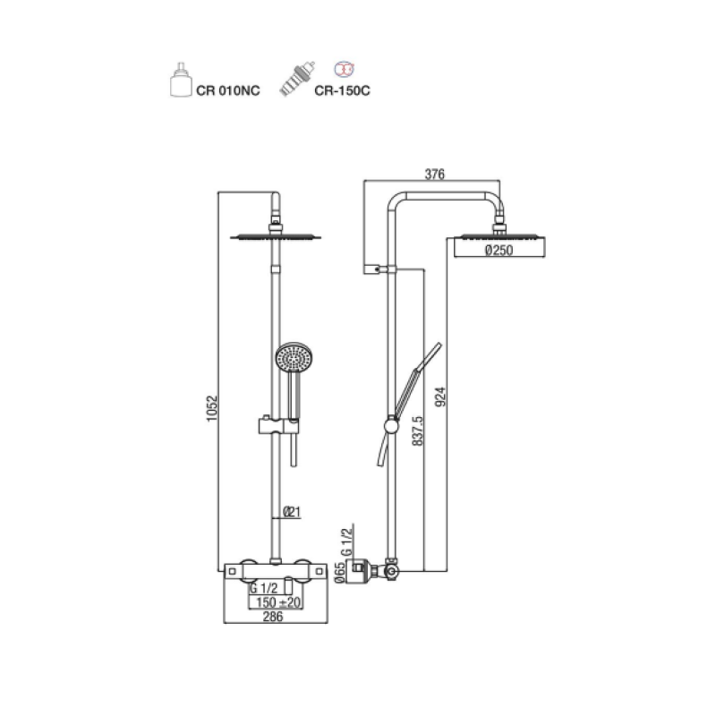 Su dušo galva: 250 mm.