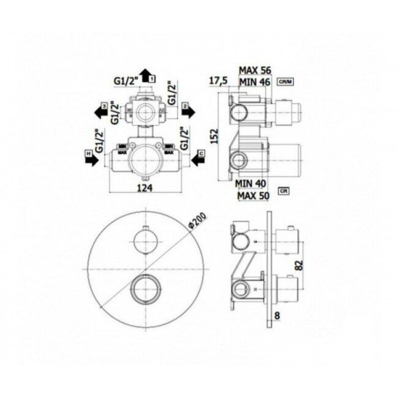 - Dušo maišytuvas su potinkinė dalimi, Ø200 mm