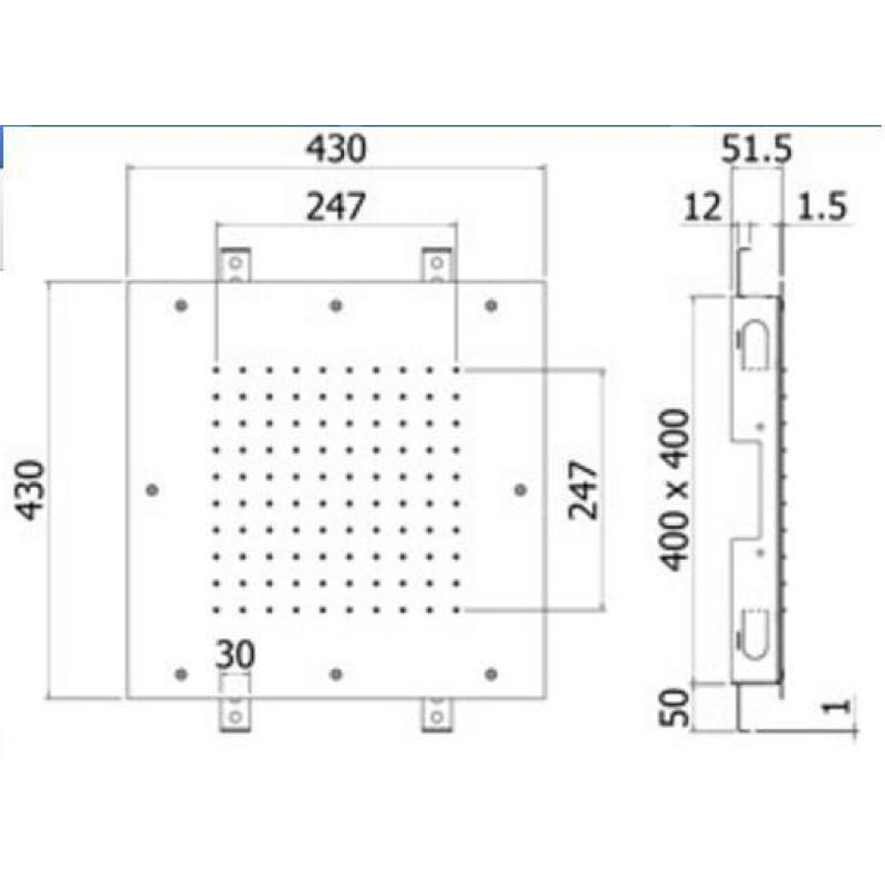- Kvadratinė lietaus galva 430x430 mm