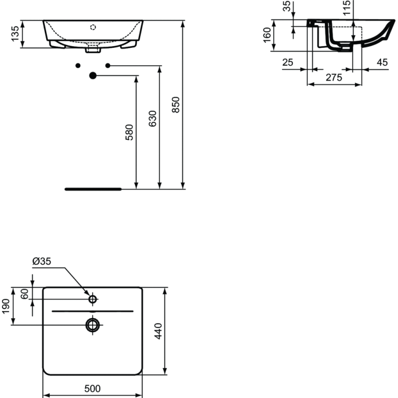 Ideal Standard Connect Air pusiau įleidžiamas praustuvas, baltos spalvos.