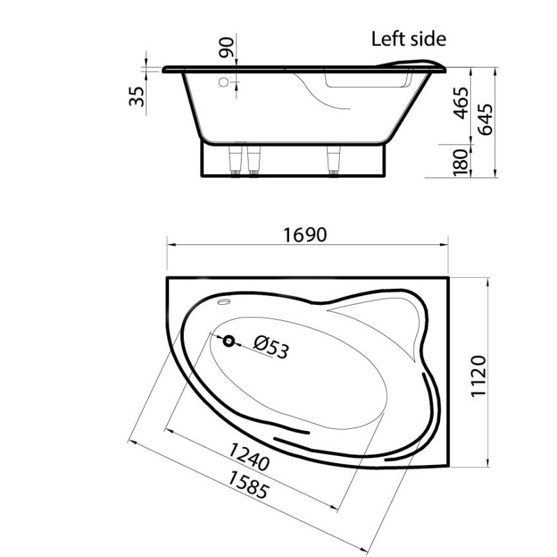 Vispool akmens masės vonia ASTORIA 1700×765×580 mm