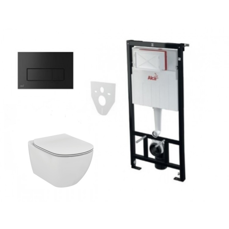 Žymos: Komplektas 4 in1 Alcaplast rėmas + mygtukas juodas matinis Ideal Standard Tesi Aquablade klozetas su lėtaegiu dangčiu