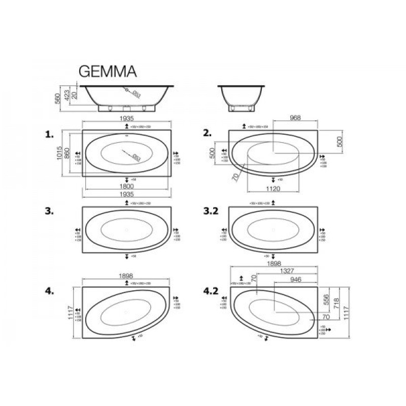 Vonia Gemma – akmens mases vonia su blizgiu paviršiumi, prieinama daugiau nei 150 skirtingų atspalvių iš universalios RAL spalvų paletės, MARMORYL® technologija leidžia derinti skirtingas spalvas vonios viduje ir išorėje.