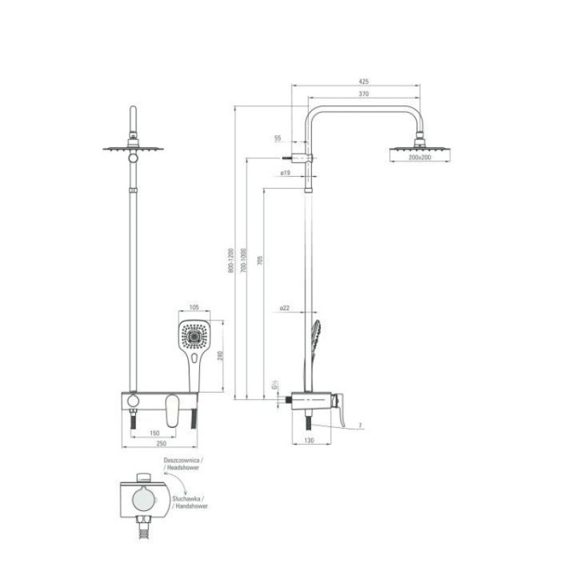 Dušo sistemos techninės savybės: