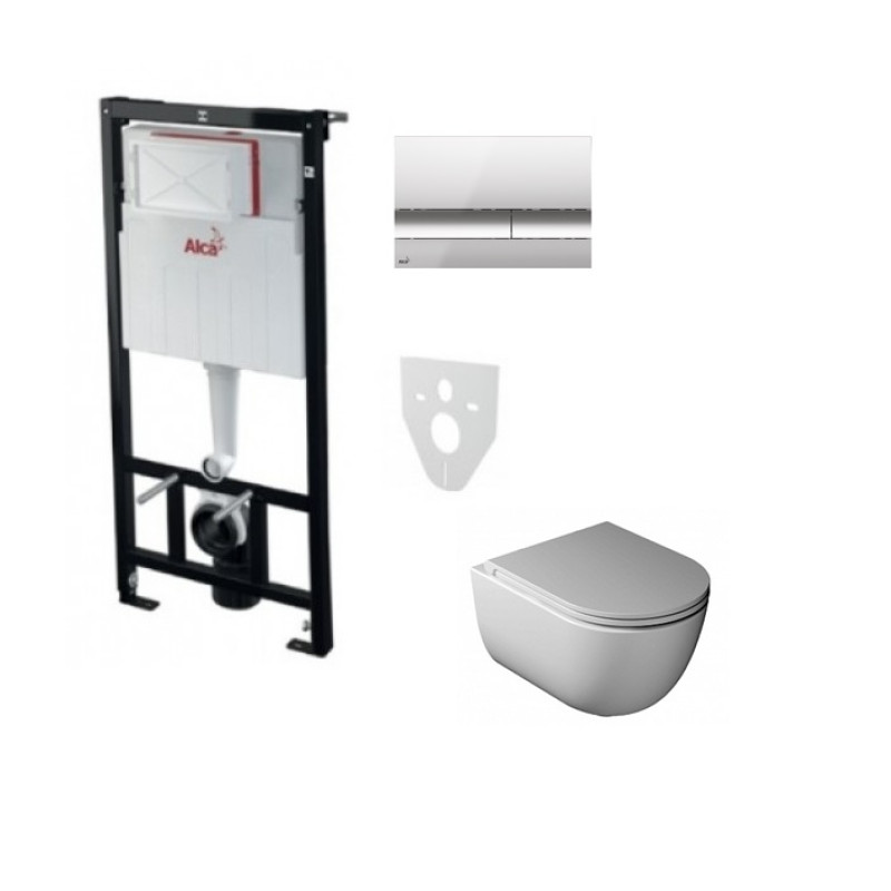 - Rėmas Alcaplast, tvirtinimai rėmui, garso izoliacinė tarpinė, chromuotas nuleidimo mygtukas.