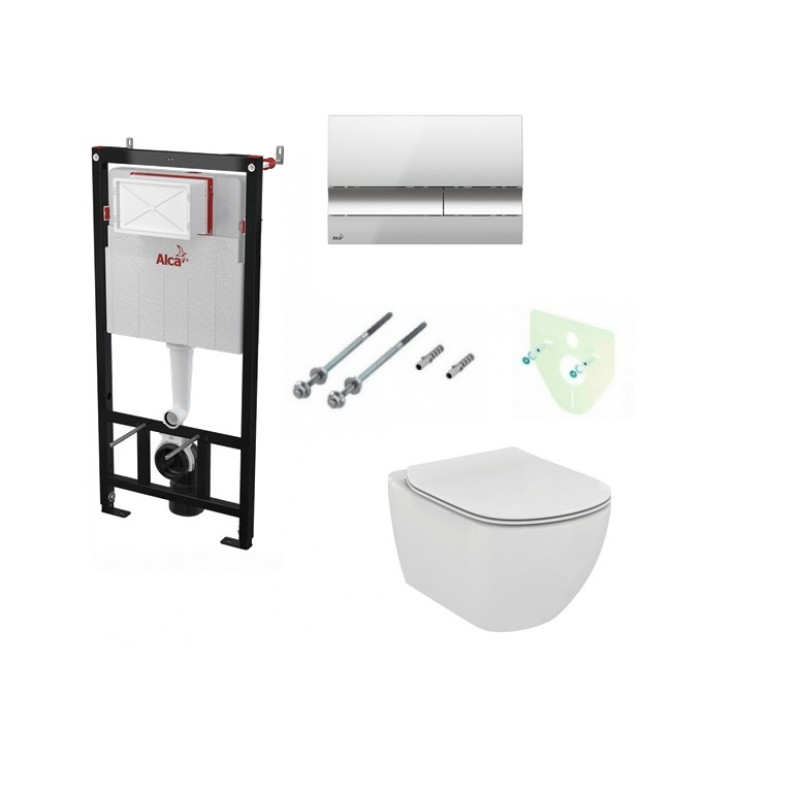 Žymos: Komplektas 4 in1 Alcaplast rėmas + mygtukas chromas Ideal Standard Tesi Aquablade klozetas su lėtaegiu dangčiu M1721