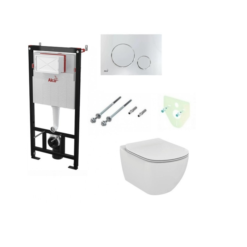 Žymos: Komplektas 4 in1 Alcaplast rėmas + mygtukas chromas Ideal Standard Tesi Aquablade klozetas su lėtaegiu dangčiu M671