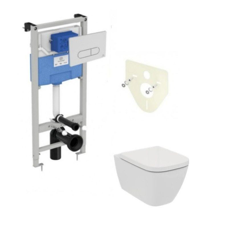 Ideal Standard potinkinis rėmas su sieniniais laikikliais ir chromu dvigubu klavišu. I.LIFE pakabinamas WC puodas su rimless nuplovimo sistema ir lėtai nusileidžiančiu dangčiu. Unikalus vandens taupymo sprendimas.