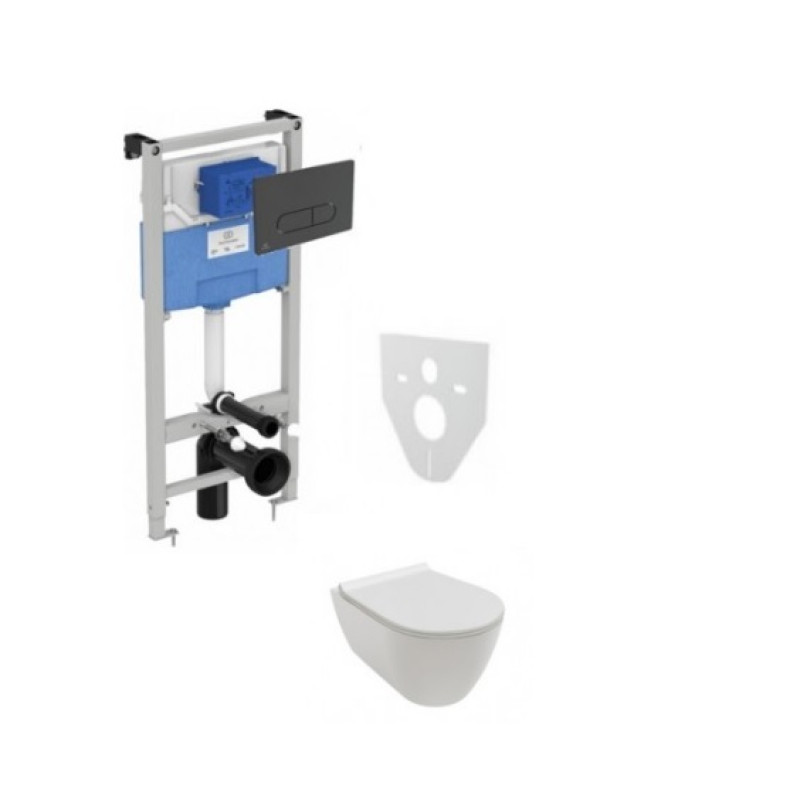 Žymos: Komplektas 4 in1 Ideal standard rėmas + mygtukas juodas matinis Hatria Fusion Rimless klozetas su lėtaegiu dangčiu