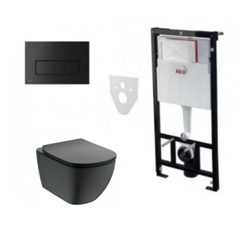 Žymos: Komplektas 4 in1 Alcaplast rėmas + mygtukas juodas matinis Ideal Standard Tesi Aquablade juodas klozetas su lėtaegiu dangčiu AM101/1120+M578+T0079V3+T3527V3 Klozetai ir rėmai