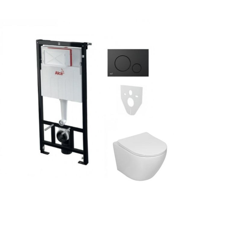 Žymos: Komplektas 4 in1 Alcadrain rėmas + mygtukas juodas matinis Sinto klozetas su sukūrinė vandens nuleidimo sistema ir lėtaegiu dangčiu SINTO-M678+AM101+M91 Klozetai ir rėmai