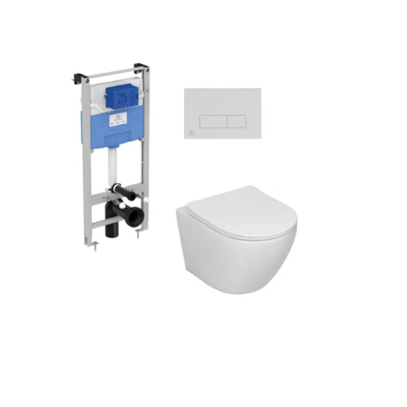 Žymos: Komplektas 4 in1 Ideal standard + mygtukas chromas Sinto klozetas su sukūrinė vandens nuleidimo sistema ir lėtaegiu dangčiu R020467+R0121AA+SINTO Potinkinių rėmų ir pakabinamų WC komplektai