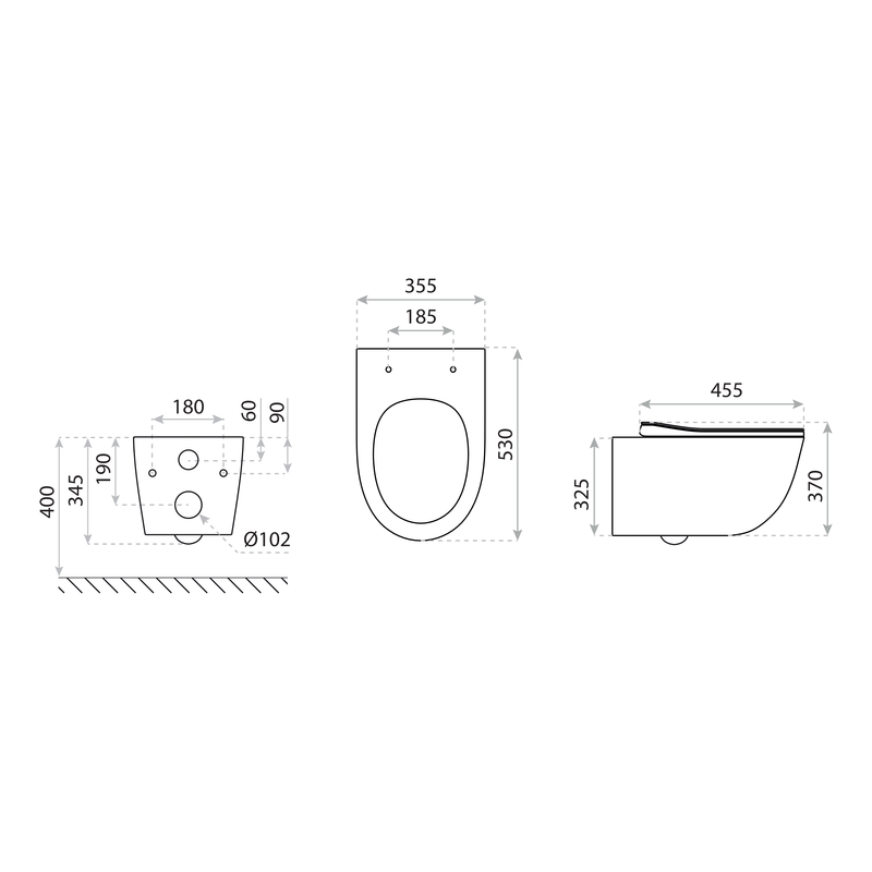 Klozeto matmenys 355x530x370 mm