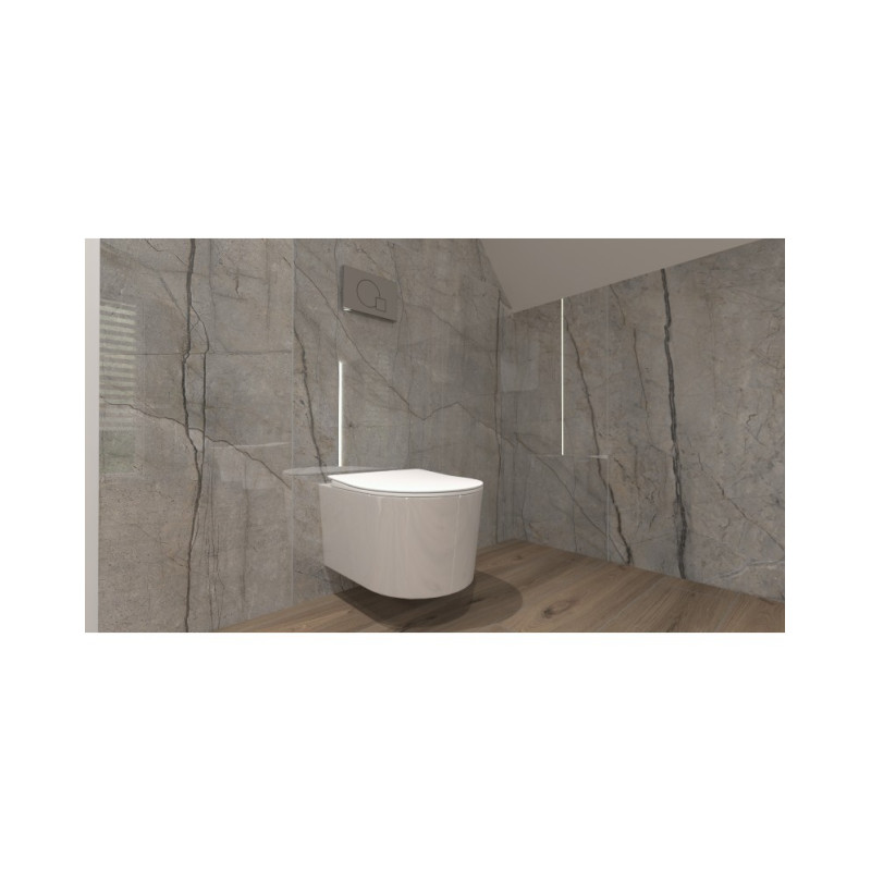 Klozetas išsiskiria savo matmenymis, yra trumpo ilgio vos 450 mm, jeigu neturite vietos vonios kambaryje šis atvėjis būtent Jums, maži matmenys sutaupys Jums nemažai vietos.