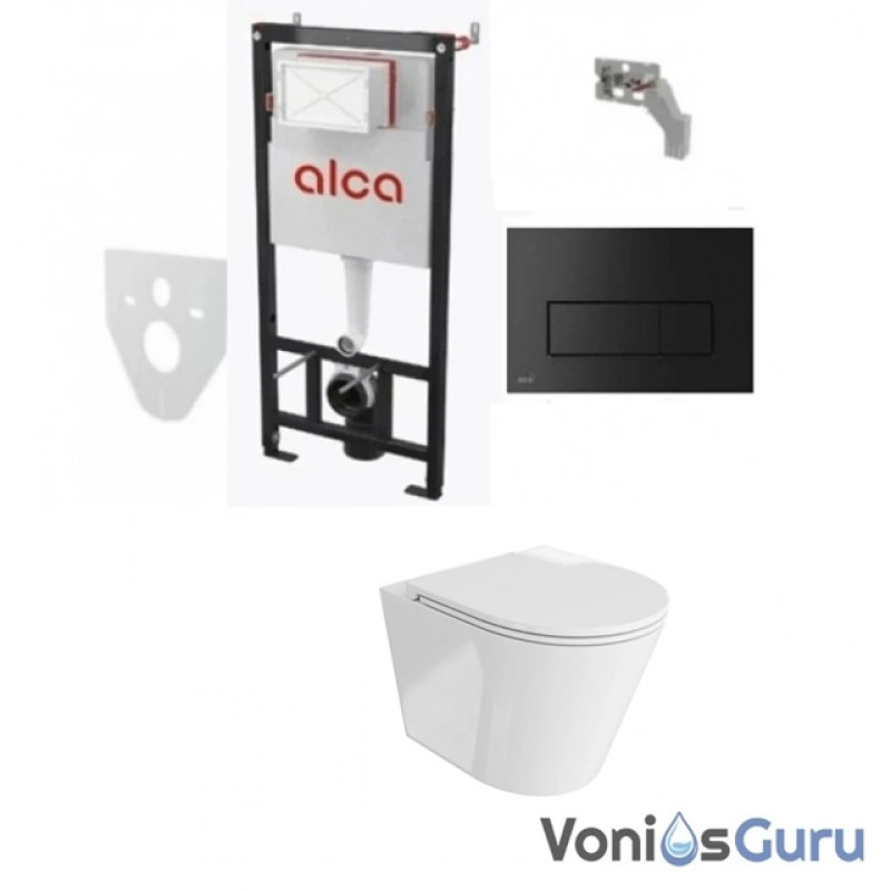 Žymos: Komplektas 4 in1 Alcadrain rėmas + mygtukas juodas matinis klozetas Galve 3.0 su sukūrinė vandens nuleidimo sistema AM101/1120+M578+5900378334781 Potinkinių rėmų ir pakabinamų WC komplektai